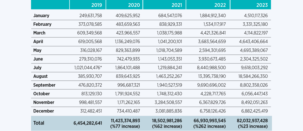 Table 2. EWR Market Trading Figures by Commodity (2023)